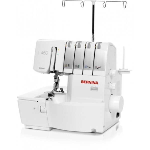 The Bernina L-450 is a high standard, professional quality overlock. It produces high quality stitches and wave free seams even at high speed. The L-450 has easy to follow, colour coded threading and even an easy lower looper threader that saves time. With a large, well lit sewing area the L-450 is an easy and comfortable machine to handle with 16 stitch variations to choose from 2, 3 and 4 thread. This machine is ideal for sewing stretch and woven fabrics and can even ruffle/gather fabric automatically using the differential feed.