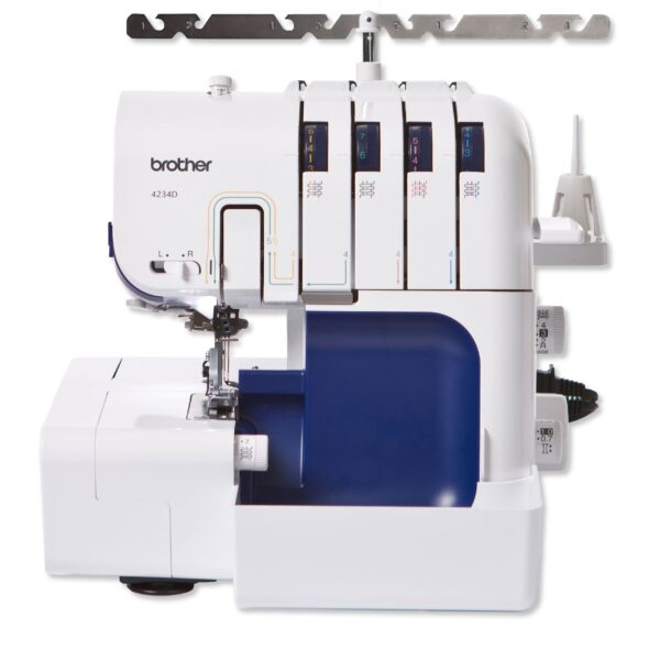 The Brother 4234D overlock hems seams perfectly and creates amazing decorative effects. It features a built in needle threader. The Brother 4234D can be used as a 2,3 or 4 thread, which offers greater versatility in stitches. With the easy to-follow thread guide and a F.A.S.T. lower looper threading system you will be sewing quickly and easily. The Brother 4234D also features a free-arm/flat bed convertible sewing surface for easy control when overlocking cuffs and sleeves, saving time and producing professional results.