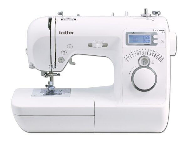 You may be new to sewing, or maybe you are looking for a sewing machine that’s easy to use, if so, the Innov-is 15 is the perfect choice. The jog dial makes it very simple to select stitches you require quickly, and needle threading is complete in no time thanks to the built-in needle threader. With the LCD screen you can see at a glance information about the stitch width and length. Simplicity does not mean a compromise on features, there are 16 stitches to choose from, including 3 different buttonholes, to give that professional looking finish. 16 Built in stitches, one step auto size buttonholes, jog dial stitch selection, LED sewing light, drop feed, Presser foot levelling button, slide speed control, needle stop position