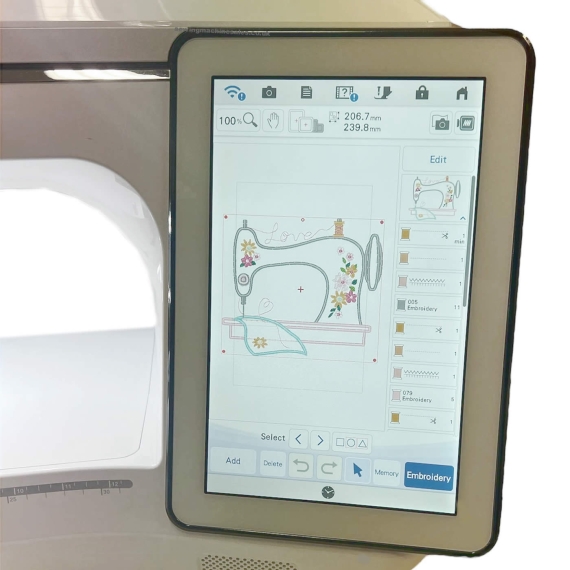 Create and bring to life your own designs with the Brother XP3. The Innov-Is Luminaire XP3 includes a large 10-inch touch screen, making the designing and editing process much easier. With it’s powerful Wi-Fi capabilities, you can send your own personal designs straight from your PC or mobile device. Expand your design palate with over 1,500 built in designs and 695 decorative stitches. It is easier now than ever to let your creative side shine with the new Brother XP3.